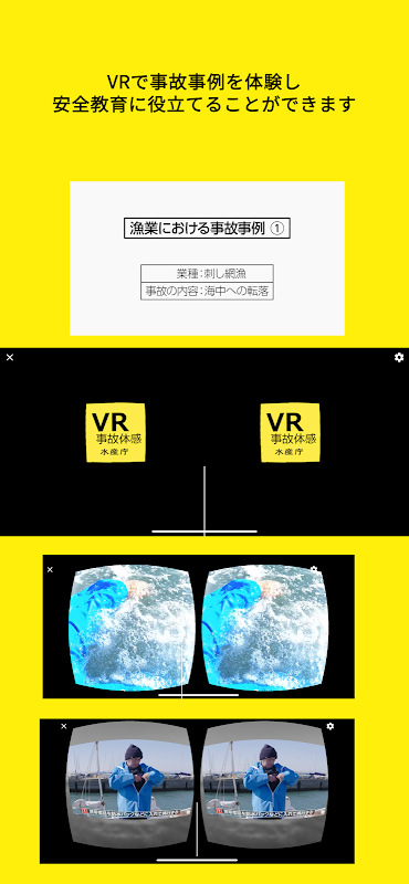 فشری وی آر ورک حادثے کا تجربہ ایپ فشریز میں شامل افراد کے لئے ایک ایپ ہے ، جہاں آپ براہ راست ایکشن وی آر امیجز کے ساتھ کام کے دوران حادثات کا سامنا کرسکتے ہیں۔ سائٹ پر حفاظتی شعور بیدار کرنے کے مقصد سے ، ہم حادثے کی روک تھام کے لئے مفید معلومات بھی فراہم کرتے ہیں۔