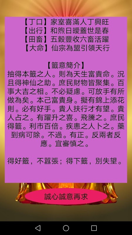 如果你心神恍惚,遇到事情時六神無主,無法好好判斷和下決定,不妨用手機求籤,問問前程,只要心誠則靈,而且有求必應,趨吉避凶。