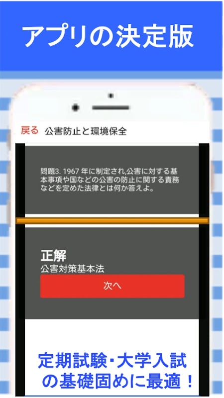 学校の定期テストや大学入試 センター試験ではほぼこのアプリにある知識問題と同じような内容が出題されるはずです。