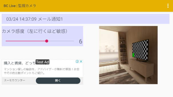 カメラ画像は変化があった時のみメールで通知しますが、変化を検知する感度は調節できます。