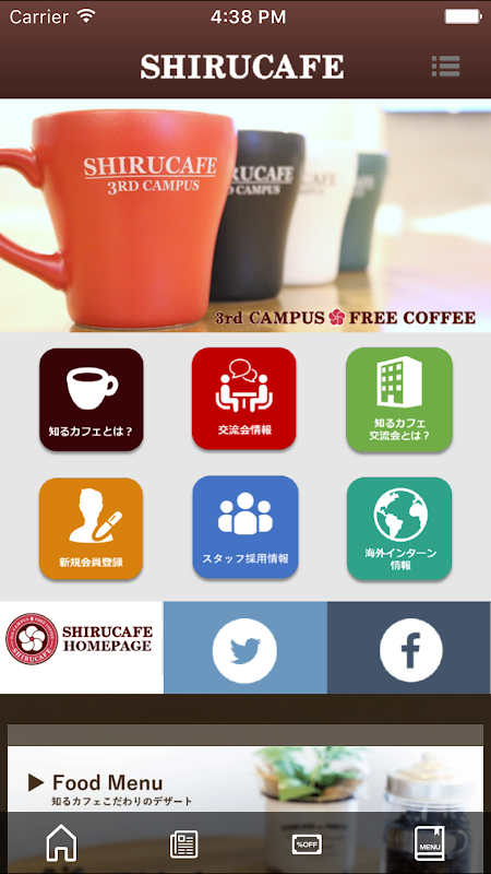 知るカフェの公式アプリです。このアプリでは、アプリユーザー限定のサービスを受けることができます。