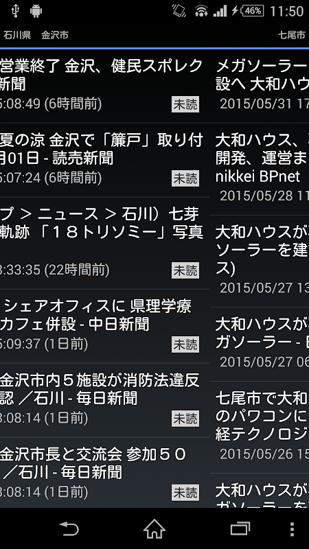 石川県のニュースを地域別に一覧表示するアプリ 石川県内の地域のニュースを一覧表示します。市区町村別に表示しています。