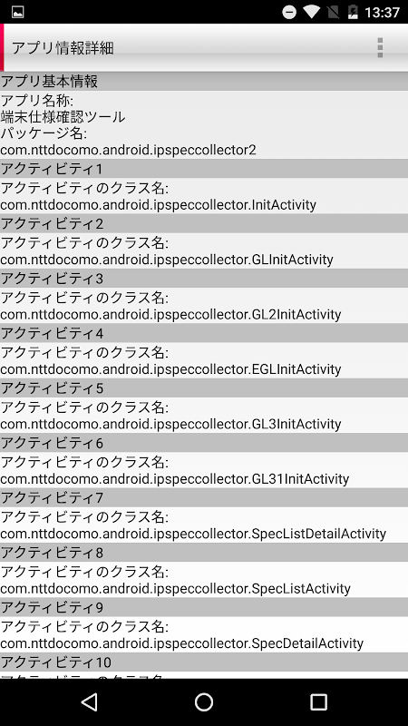 This application displays and outputs the "device information" of the smart phone(Android) terminals and installed