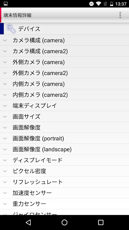 ・This application displays the "device information" of the smart phone(Android) terminals.