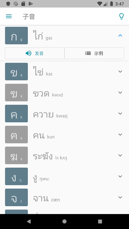4、子音附带了“英语音标”旁注,以便您在前期能找到一些相同发音之处,提高学习进度。