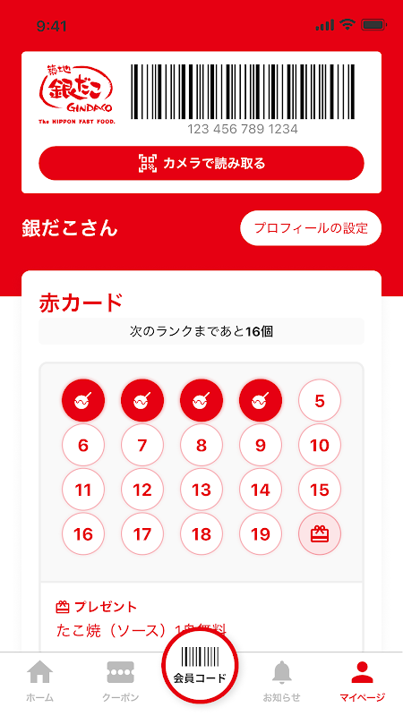 + お客さまのスタンプカードのランクに応じて、背景の色が金・銀・赤に変わるようになりました