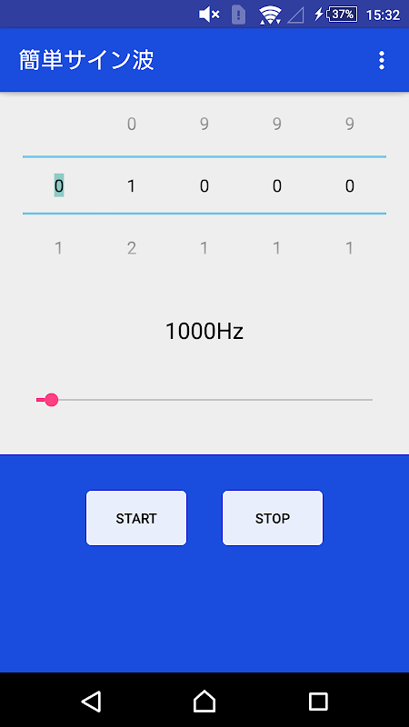 Generate a sine wave in real time, and play.Frequency can also be changed in real time.