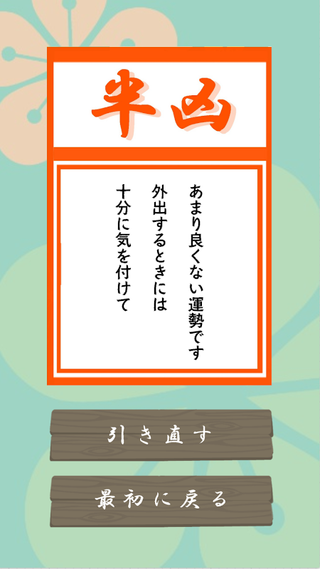おみくじを引くをタッチするだけで結果がでる簡単なおみくじを引くことができます。