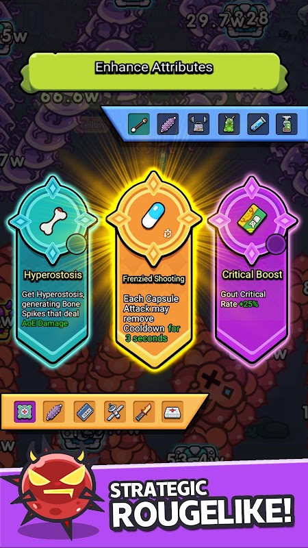 2. Roguelike Skill Choices: Roguelike اور کردار ادا کرنے والی گیمز دونوں کی بنیادی اصناف کو مجسم کرتے ہوئے، Cell Survivor مہارتوں کی بہتات فراہم کرتا ہے جو roguelike RPG کے لیے آپ کے اسٹریٹجک انتخاب کو پورا کرتا ہے۔ یہ تنوع اس بات کی ضمانت دیتا ہے کہ کوئی بھی دو پلے تھرو ایک جیسے نہیں ہیں، جو لامحدود دوبارہ چلانے کی صلاحیت اور ٹاور دفاعی انداز میں مختلف حکمت عملی کی مصروفیات پیش کرتے ہیں۔ ⚔️