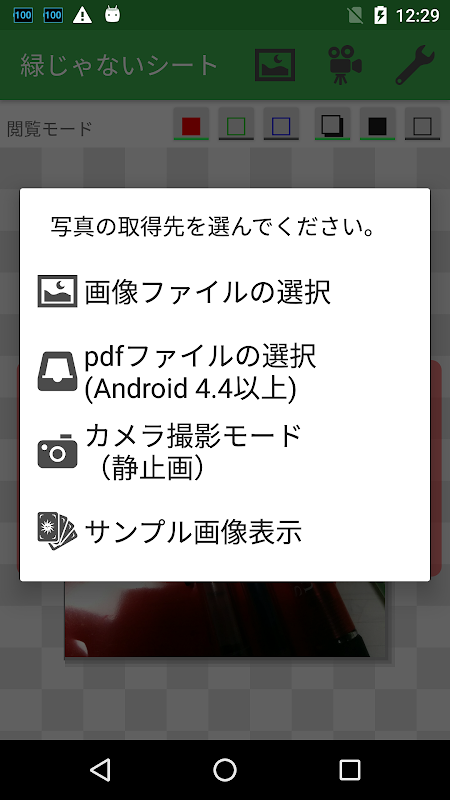カメラまたはファイラから画像を選択(簡易的にpdfも1ページごと表示可能)。