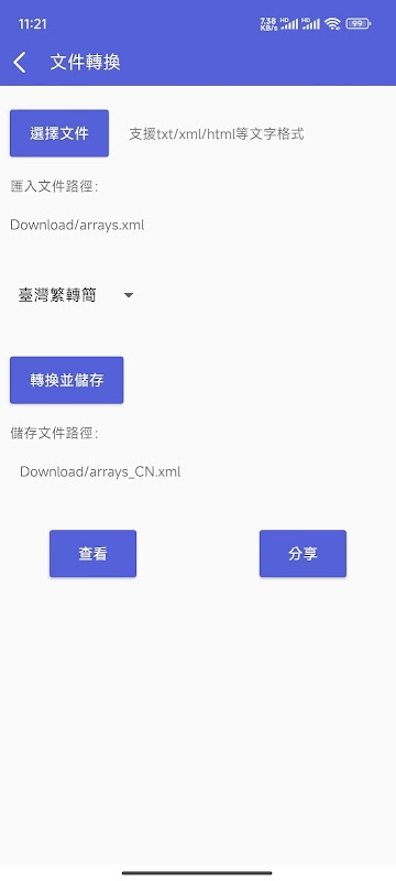 دستاویز کا ترجمہ ٹیکسٹ فارمیٹس جیسے txt، xml، html وغیرہ کو سپورٹ کر سکتا ہے۔ تبادلوں کے نتائج کو فولڈر میں محفوظ کیا جا سکتا ہے، اور تبدیل شدہ دستاویزات کو دیکھا اور شیئر کیا جا سکتا ہے۔