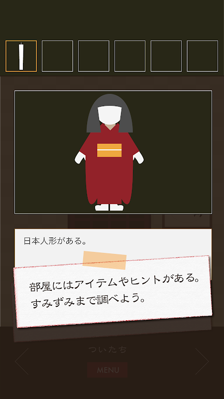 扉は鍵が閉まっていて部屋からは出れません。様々な場所に隠された鍵を見つけて