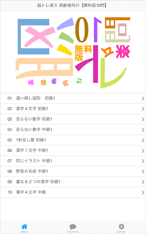 無料版の脳トレです。無料版(全10問)をご利用していただき、有料版の50問を是非ご利用下さい。