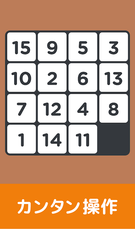 15 پہیلی کے نام سے بھی جانا جاتا ہے، یہ ایک پہیلی ہے جہاں آپ نمبروں کو لائن کرنے کے لیے ٹائلیں سلائیڈ کرتے ہیں!