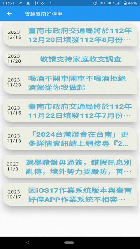 Tainan City Transportation Bureau کی طرف سے جاری کردہ سمارٹ فون سافٹ ویئر "Tainan Stop" Tainan City پارکنگ سے متعلق معلومات فراہم کرتا ہے۔