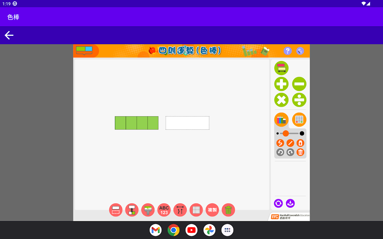 "چار ریاضی کے آپریشنز (کلر اسٹک)" ایک الیکٹرانک مسئلہ حل کرنے والا آلہ ہے جو خود مطالعہ اور تدریس کو مربوط کرتا ہے۔ طلباء اس ایپ کا استعمال کلاس سے پہلے جائزہ لینے اور خود مطالعہ کرنے کے لیے کر سکتے ہیں، اور وہ کلاس کے بعد جمع، گھٹاؤ، ضرب اور تقسیم کے الفاظ کے مسائل کا جائزہ لے سکتے ہیں اور سمجھ سکتے ہیں۔ اساتذہ کلاس میں اس ایپ میں موجود کلر سٹکس کو بھی استعمال کر سکتے ہیں۔ مختلف ریاضیاتی ماڈلز، متن کو تصور کیا جاتا ہے تاکہ طلباء کو لاگو مسائل کے مسئلے کو حل کرنے کے طریقوں کو سمجھنے اور اس میں مہارت حاصل کرنے میں مدد ملے۔