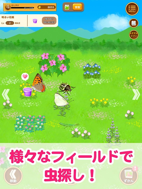 جنگلات اور پھولوں کے کھیتوں جیسے کھیتوں میں مختلف کیڑوں سے ملو!