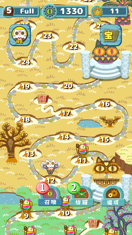 請你幫喵喵神所在的天界完成一個個階段關卡吧!