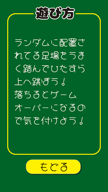 ایک سادہ کھیل جہاں آپ تصادفی طور پر رکھے ہوئے سہاروں پر قدم رکھتے ہیں اور اوپر کی طرف کودتے رہتے ہیں!