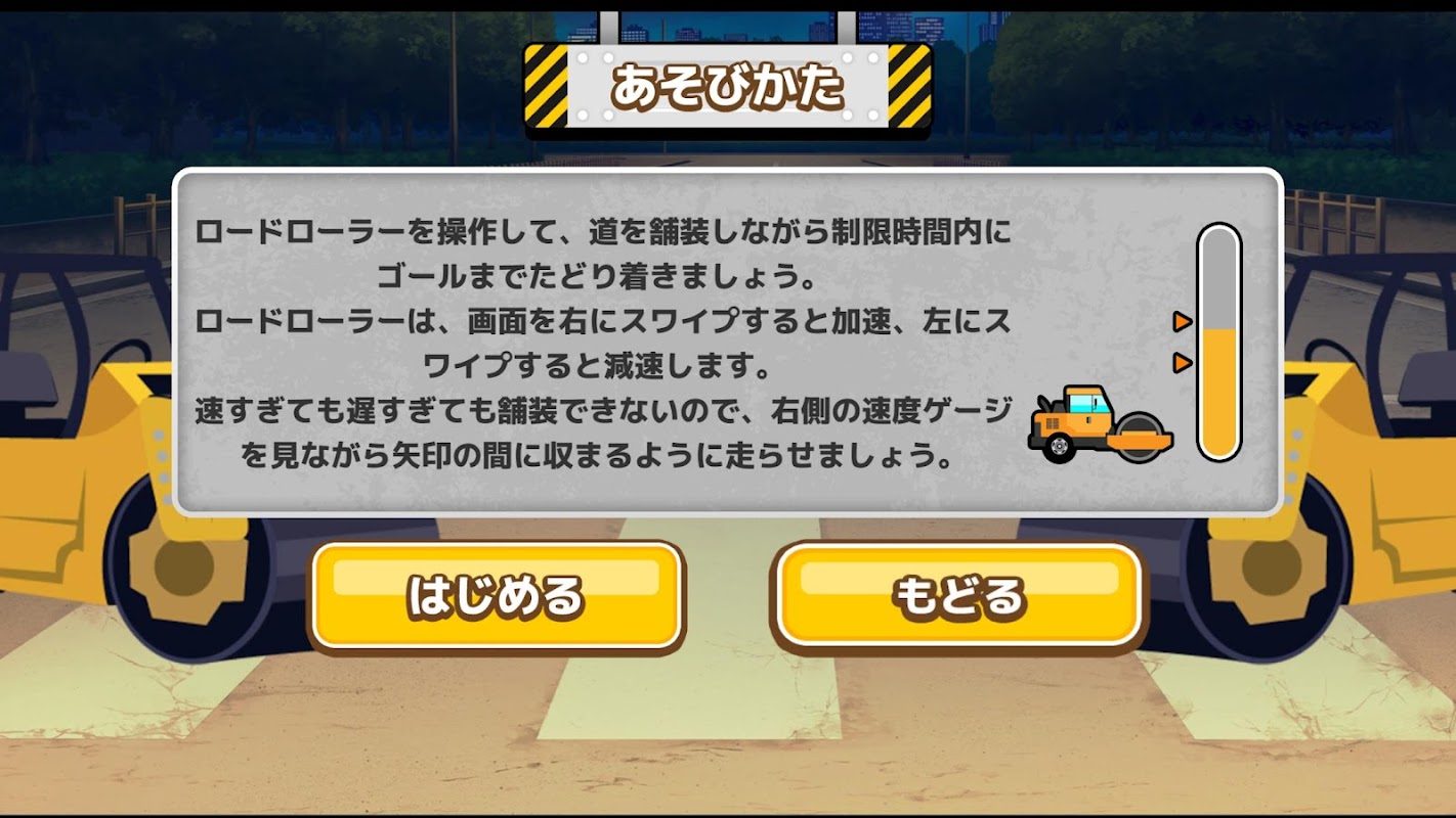 "اسٹارٹ" ڈسپلے ظاہر ہونے کے بعد کھلاڑی روڈ رولر کو چلانے کے قابل ہو جائے گا۔