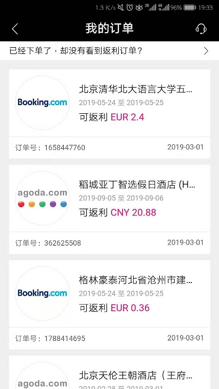订酒店,享受返利。酒店返利APP涵盖众多国内外知名的酒店预订网站,包括booking,agoda,ctrip等。用户通过我们APP跳转到熟悉的OTA完成酒店预订,可以在交易完成后得到返利现金。
