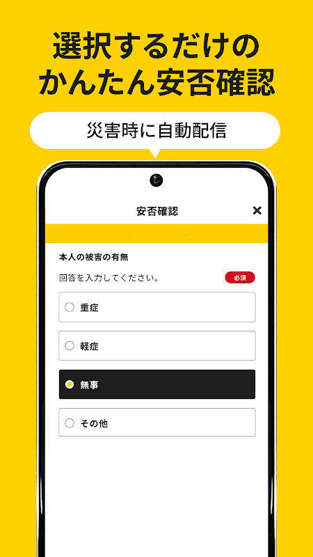 جب کوئی آفت آتی ہے تو حفاظتی تصدیق خود بخود بھیج دی جاتی ہے، اور آپ صرف ایک سادہ انتخاب کے ساتھ چیک کر سکتے ہیں کہ کوئی نقصان ہوا ہے یا نہیں۔
