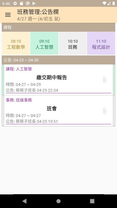5. کلاس شیڈول: اپنے ہی کلاس شیڈول کا نظم کریں
