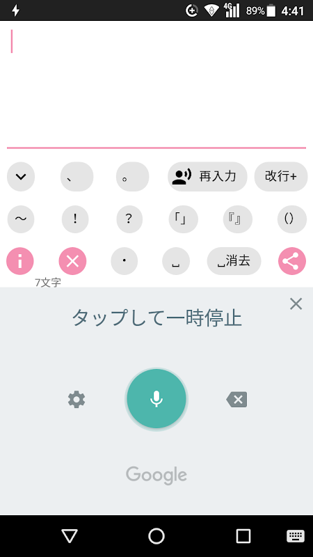 当アプリはGoogleと無関係です。5つ星は嬉しいですが評価と引き換えに機能が追加されることはありません。スペースを上手く利用するため、意図しないところにスペースが挿入されることがあります。文字数は目安です。Google 音声入力が使えないと意味がないアプリです。