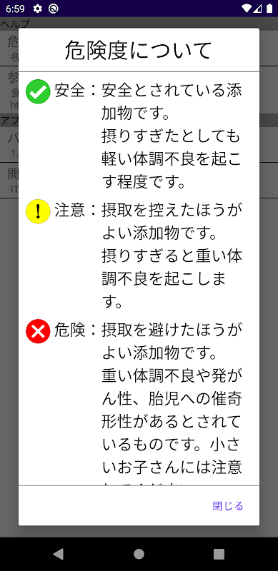 ・添加物一覧(リスト)に危険度アイコンも表示されるようになりました