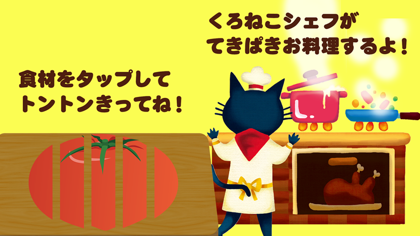 作る料理を選ん後、食材をタップで切って作っていくアプリです。