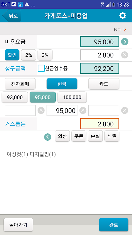 실물포스를 능가하는 모바일 포스 미용실 장부 세무 노무기능 추가요금상담기능 미용요금표 간단작성기능