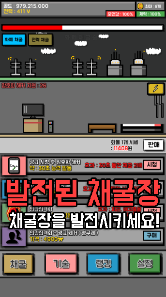 가상화페 채굴장을 키워 이 시대의 희대의 사람이되어보세요.