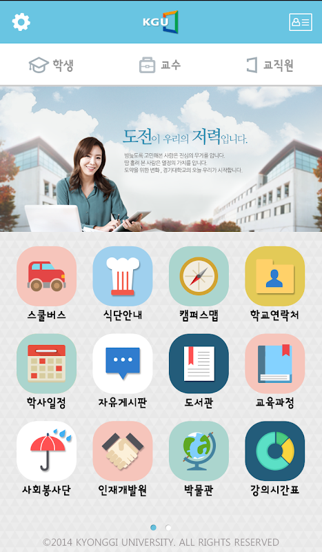 [ 경기대학교 공식 어플리케이션 ] 대학도우미, 모바일학생증, 학사/행정 관련 서비스, 도서관, 인재개발원, 박물관 관련 일부 서비스