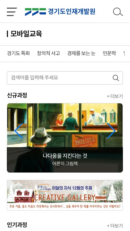 ہم Gyeonggi-do اور سٹی/گن آفیشلز (صرف Gyeonggi-do اہلکاروں کے لیے) کی صلاحیت کی تعمیر اور خود ترقی کے لیے مختلف ای لرننگ سیکھنے کے لیے اپنی مرضی کے مطابق تعلیمی خدمات فراہم کرتے ہیں۔
