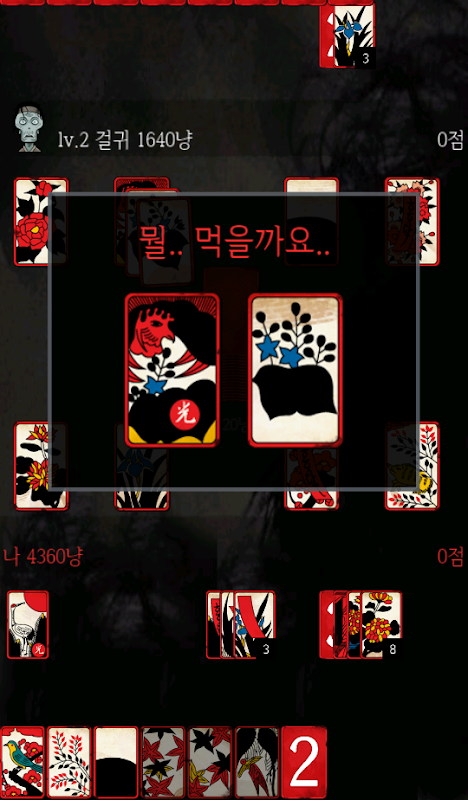 귀신이 나타나면 맞고를 치고 도감을 열어볼 수 있습니다.