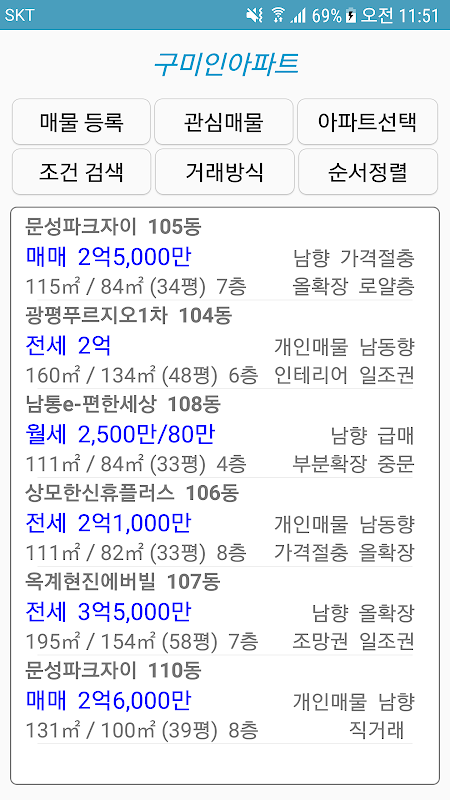 7. 조건 검색으로 원하는 아파트를 빠르게 찾을 수 있습니다.