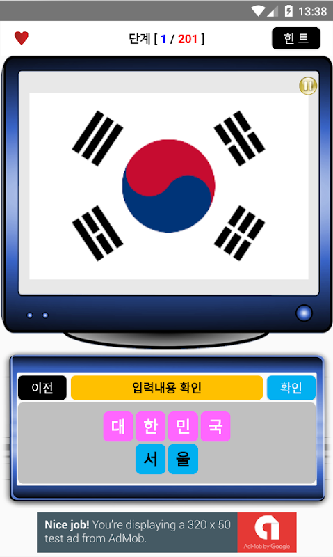 나라이름 맞추기: 나라이름을 맞추면 다음 스테이지로 진행.
