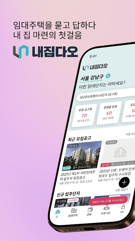 이제 내 집 마련의 궁금한 점을 언제든지 물어보고, 필요한 정보는 실시간으로 얻으며, 나만의 주거 노하우를 공유해보세요.