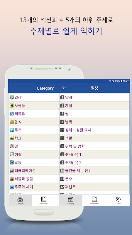 - 기초 생활 어휘를 13개의 Section과 4~5개의 하위 주제로 나누어 주제별로 쉽게 익힐 수 있다.