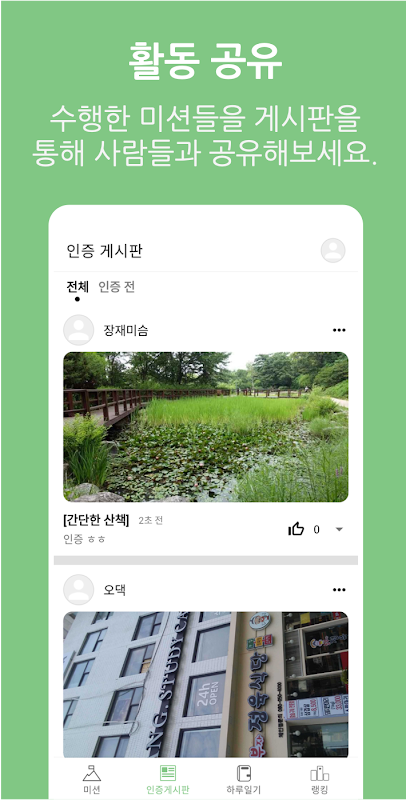 다른 사람들과 미션을 수행하는 모습들을 공유하면서 서로 응원과 함께 미션을 수행 하였다는 것을 인정해주세요.