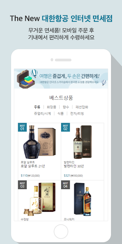 여행은 즐겁게, 두 손은 가볍게!대한항공 인터넷면세점 스카이숍이 새롭게 단장하였습니다.면세품 사전 구매하시고 기내에서 편리하게 수령하세요!