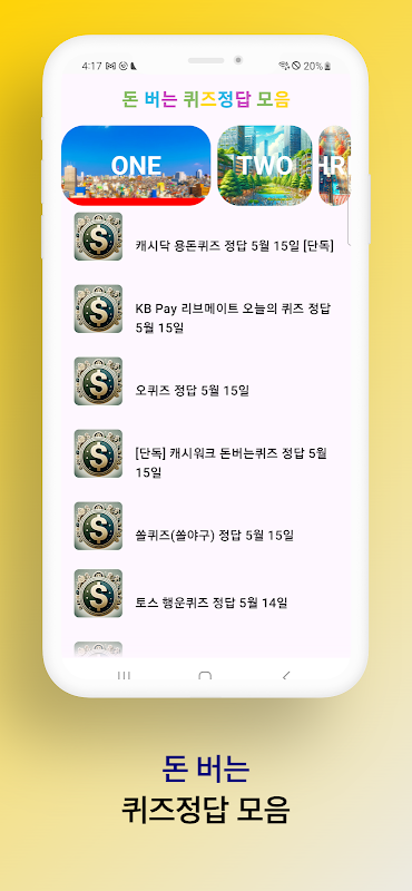 - 돈 버는 퀴즈정답 모음 앱 입니다.
