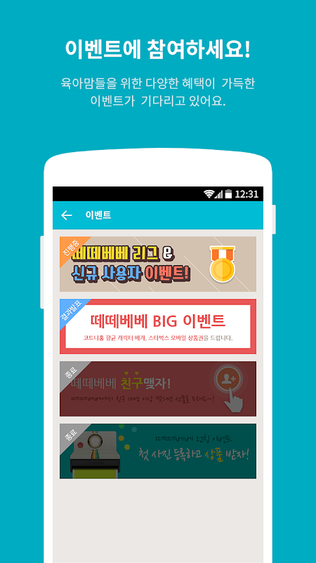 지금 떼떼베베를 다운받으시면 다양한 선물이 쏟아집니다.