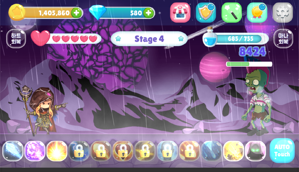 간편한 조작과 다양한 스킬마법으로 좀비를 처치해보세요.
