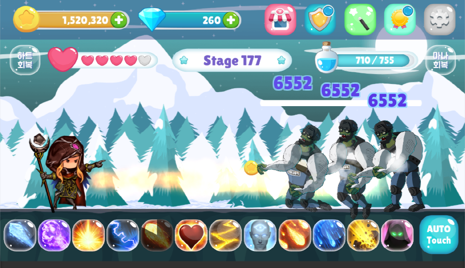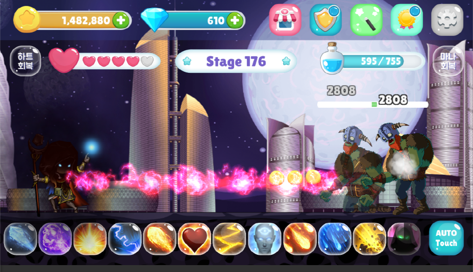 - 다양한 스킬마법을 조합하여 공격해보세요.