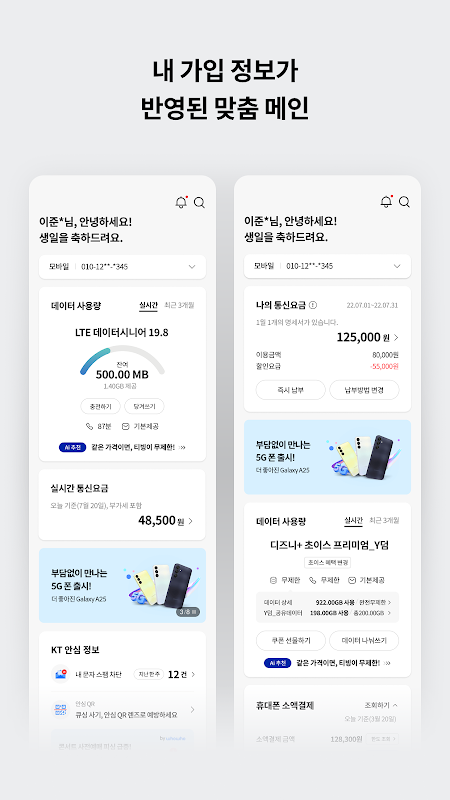 آپ MyKT پر دیگر KT ایپس کے اہم فنکشنز، جیسے KT ممبرشپ مووی ریزرویشن، فیملی باکس، اور Y باکس ڈیٹا شیئرنگ استعمال کر سکتے ہیں۔