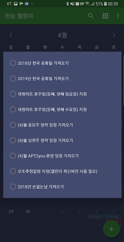 이제 개인 일정만 관리할 수 있는 캘린더가 아니라 나에게 필요한 각종 다양한 일정이 자동으로 추가 표시되는 만능 갤린더를 사용해 보세요.