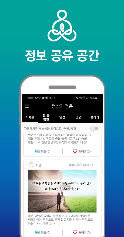 - 게시판을 활용 해서 명상 커뮤니티를 함께 공유 하세요.