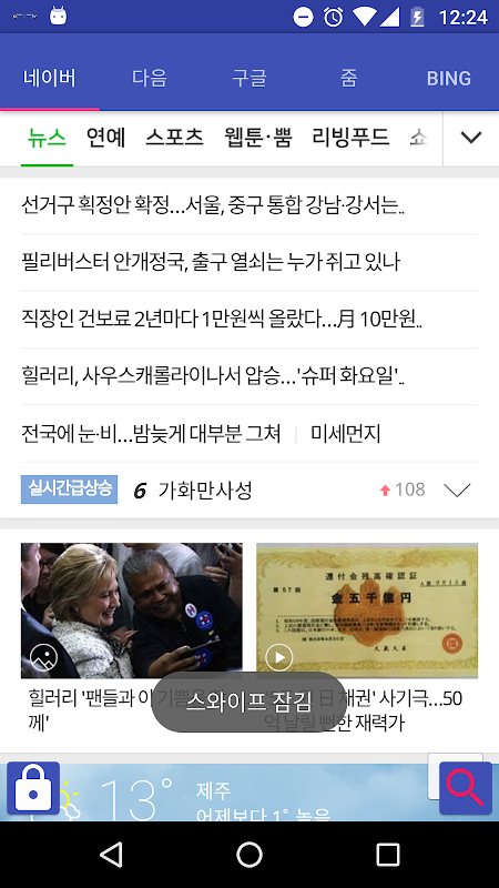 2. 좌측 하단의 열쇠 아이콘을 누르면 스와이프가 잠깁니다.