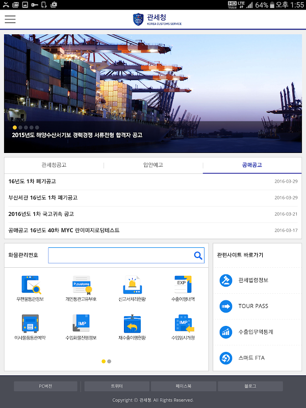 1. کوریا کسٹم سروس ویب سائٹ پر مین بلیٹن کا بورڈ